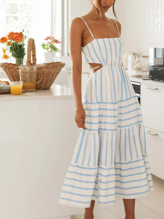 Cutout Striped Tiered Summer Midi Dress